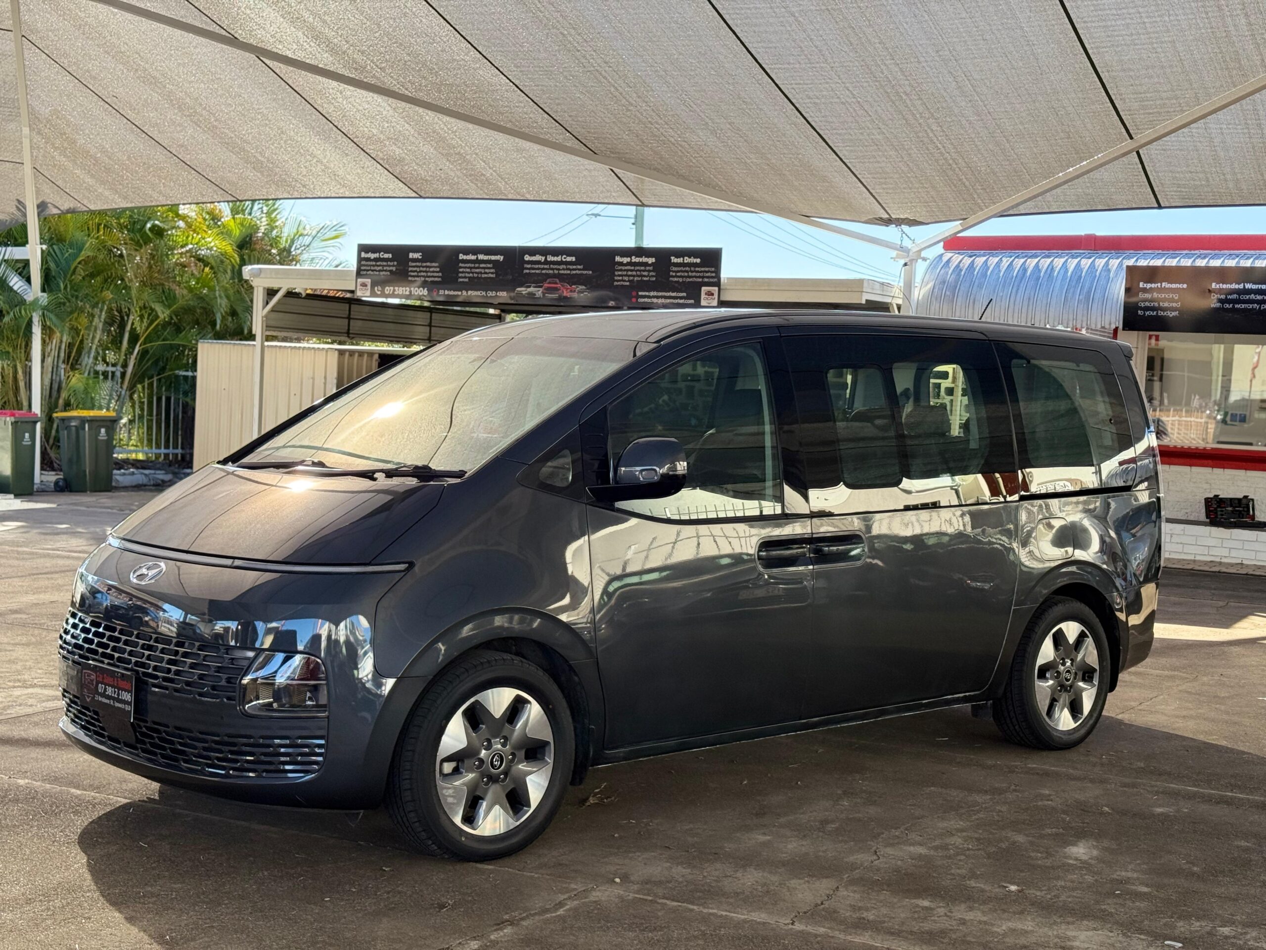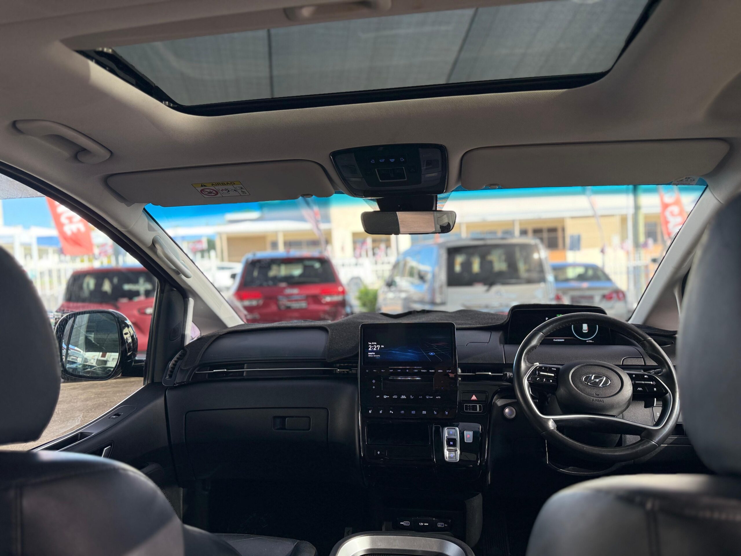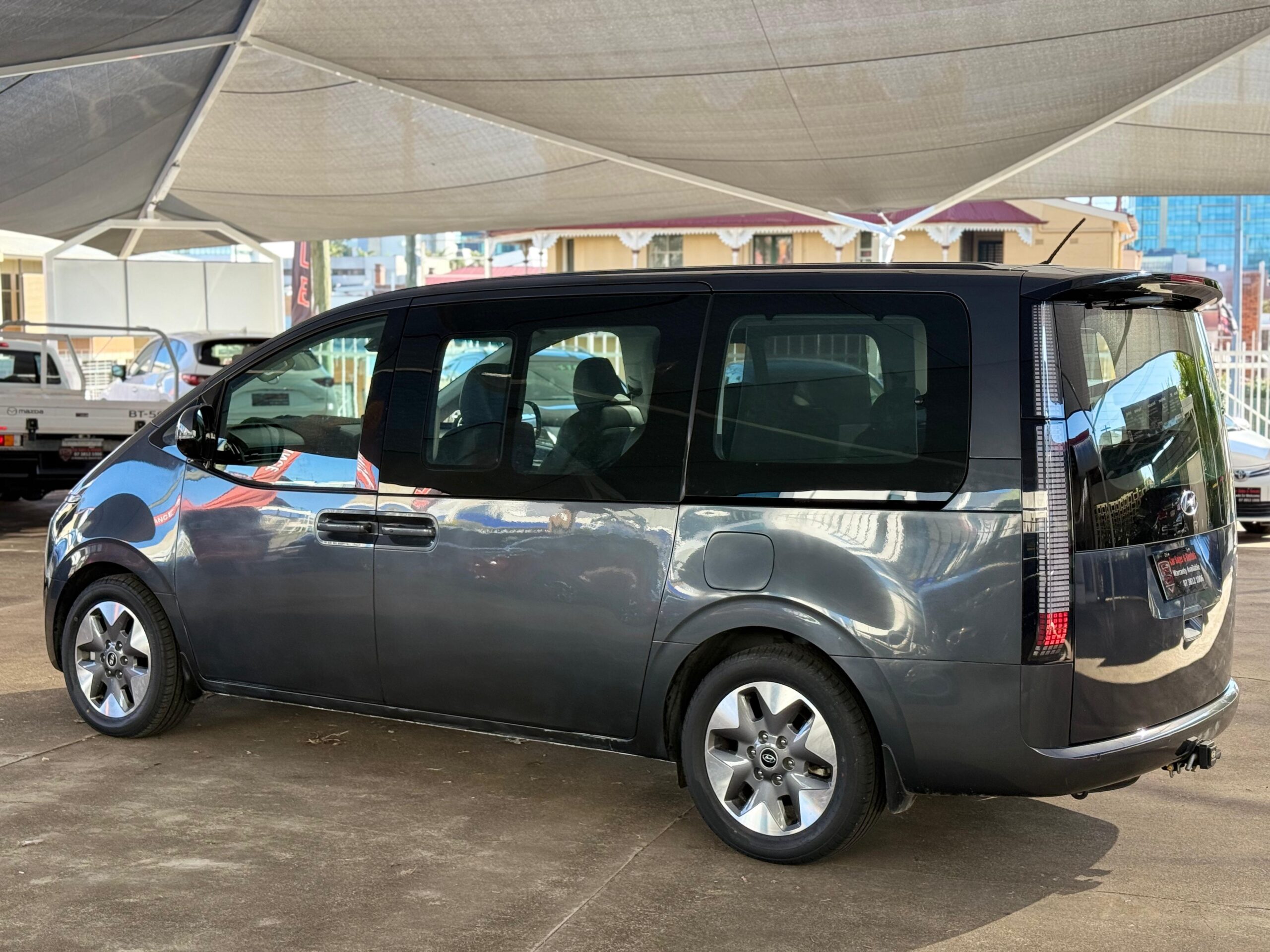 The 2021 Hyundai Staria AWD Diesel Turbo is a futuristic and spacious minivan/people mover. It’s powered by a 2.2-liter four-cylinder turbo-diesel engine (130kW/430Nm) paired with an 8-speed automatic transmission and features an all-wheel-drive system for enhanced traction. Known for its bold and unconventional exterior, generous interior room,Horizontal LED daytime running light, and a suite of advanced safety features, it offers a comfortable and confident ride. The seats often feature fore/aft sliding functions for maximum flexibility, allowing for substantial cargo volume behind the third row,and low beltlines contributing to its unique look and making it suitable for families or commercial use.